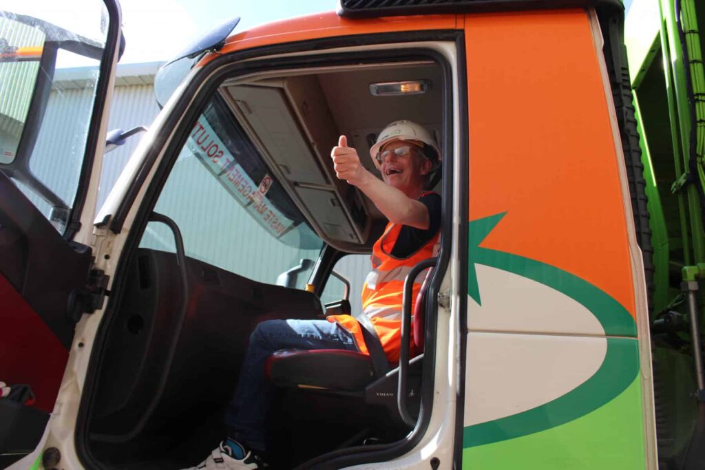 During the afternoon, Martin was invited to Countrystyle’s Recycling hub at Ridham dock and see first-hand one of Countrystyle’s iconic green dustcarts that regularly make its rounds near his home. Under supervision from the Head of Trade, Frank Gardner, Martin got to operate the dustcart, load the bin, tip and release. He was also able to ride in the cab around the site and learn the controls from the inside.