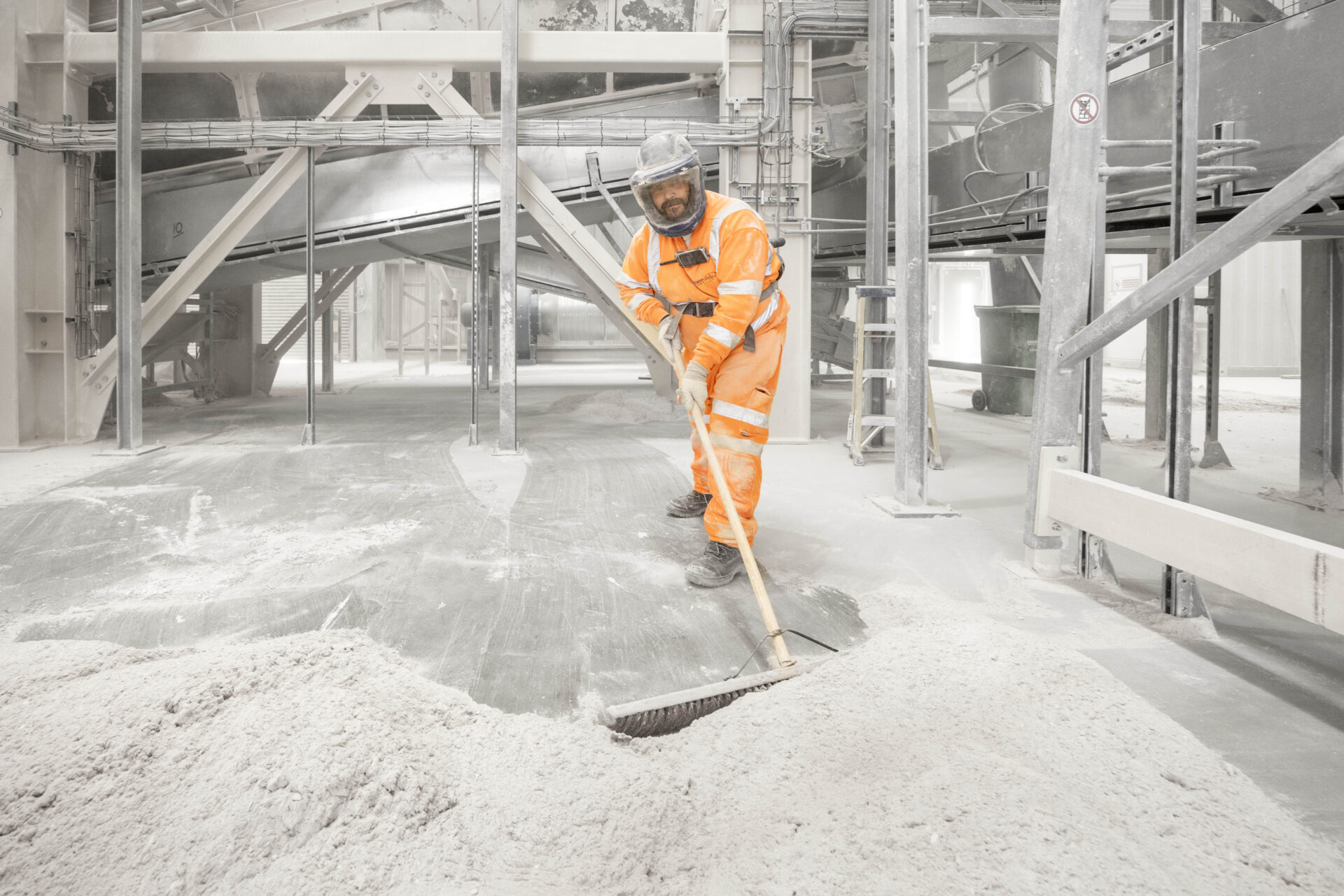 It goes straight through our dedicated processing line, where it’s broken down, the paper is removed, and the gypsum is separated and turned into recycled gypsum powder for reuse.